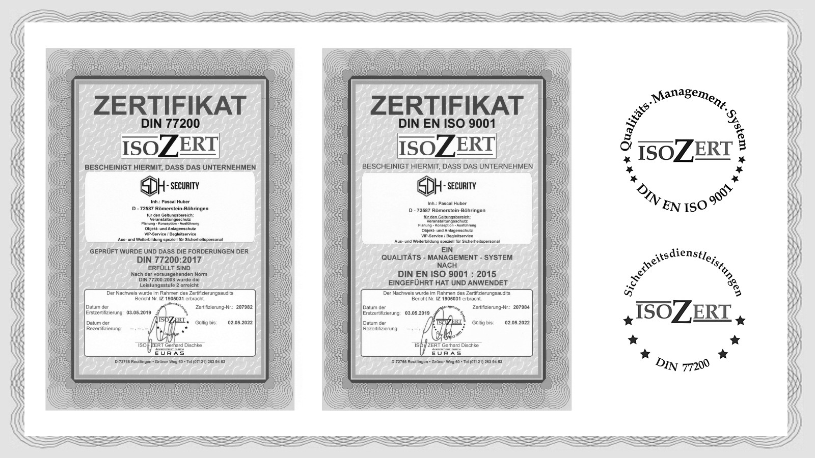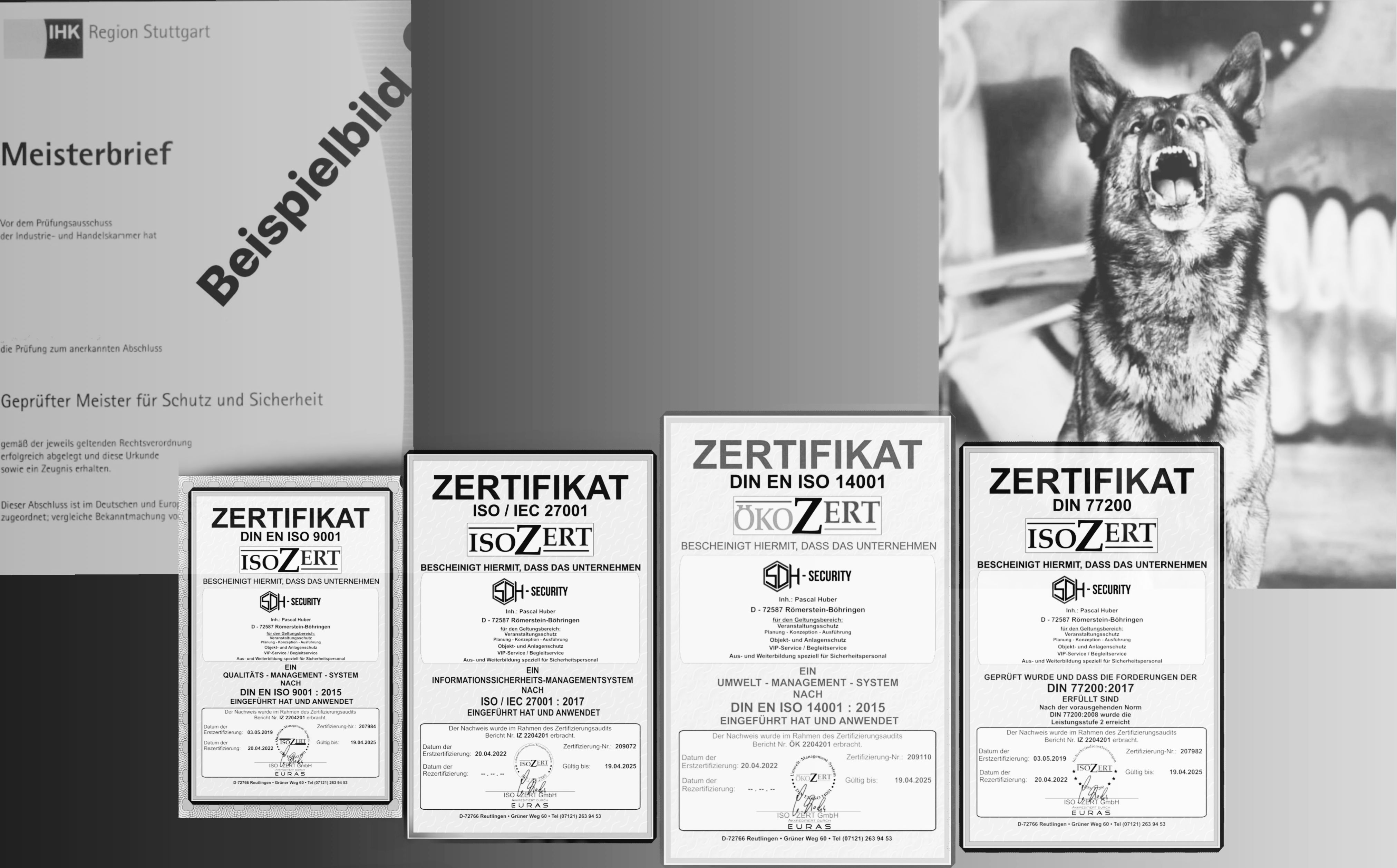Ebenfalls schön zu sehen ist die Tatsache, dass ohne besondere Vorbereitungen, der hohe, hauseigene Qualitätsanspruch kaum Verbesserungen zugelassen hat und wir hiermit eine schöne Bestätigung für unsere vergangene Arbeit haben. Auch die praktischen Ausbildungsabläufe, bei welchen neben der Aus- und Weiterbildung eigener Mitarbeitern auch andere Sicherheitsfirmen zu uns kommen haben die Auditoren überzeugt.