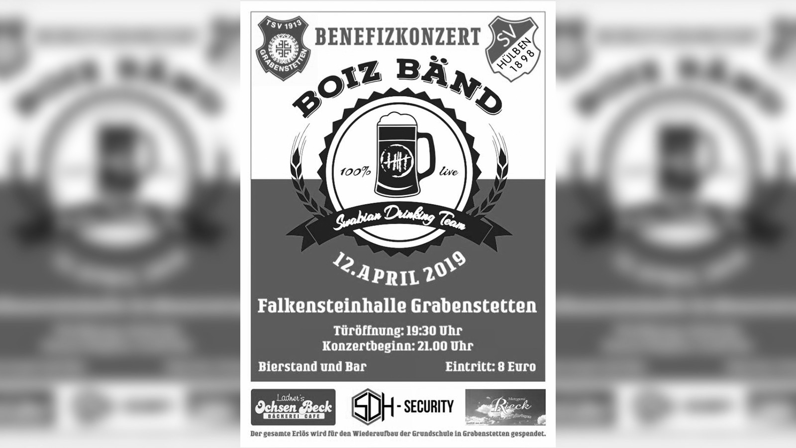 Nachdem schweren Brand an der Grundschule in Grabenstetten lassen wir es uns natürlich nicht nehmen einen Teil zum schnellen und erfolgreichen Wiederaufbau beizutragen. Wir werden ehrenamtlich für einen geordneten und friedlichen Verlauf des Benefizkonzertes verantwortlich sein und diesen natürlich auch realisieren!